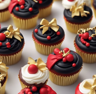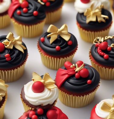 Deliciously moist cupcakes with artistic frosting designs.